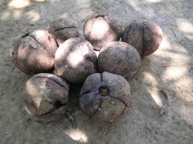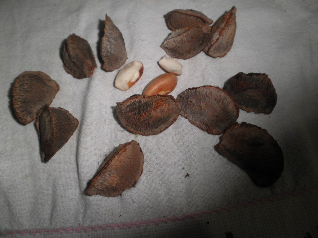 Castanha do Pará é uma árvore muito alta, chega medir até 30 metros de altura quando é época dos frutos a árvore fica carregada de úricos redondos, iguais a este que você está vendo, dentro dele é que ficam as amêndoas, é recomendável que não se fique em baixo de uma castanheira quando eles estão caindo, pois é pesado pode até matar si cair na cabeça devida á altura e o peso, dobra com a velocidade.